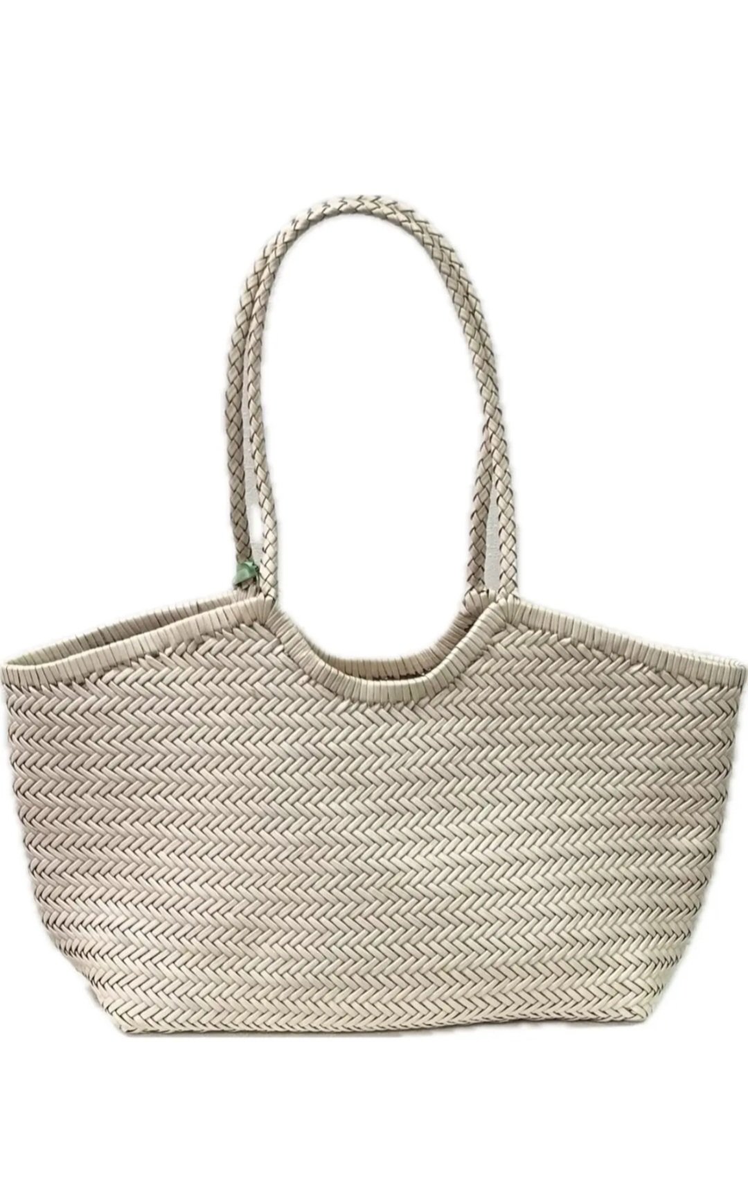 Bolso de piel tratada imitando a tejido de rafia color crudo, medidas aproximadas 50x 50,te complementara con todo!