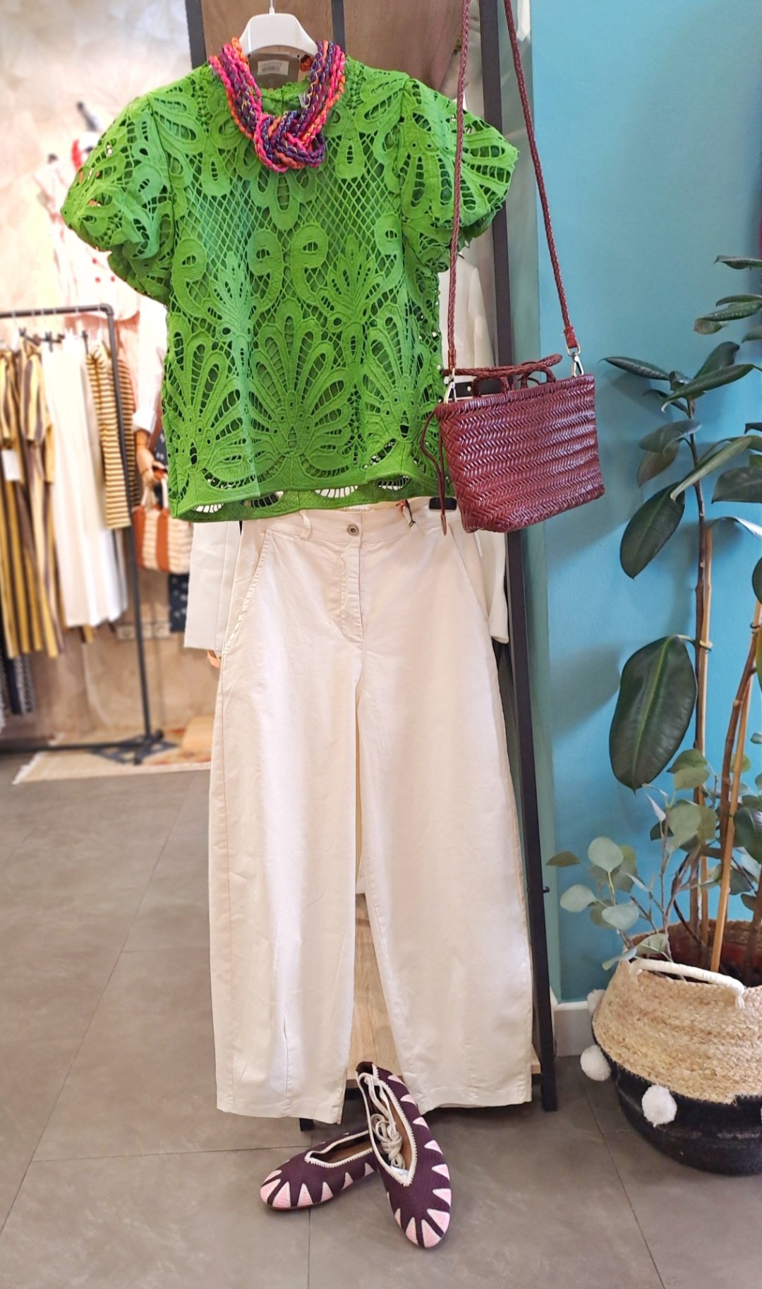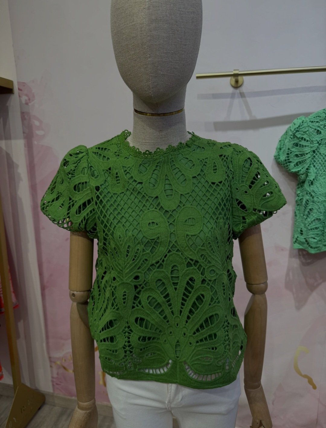 Camisa de manga corta color verde hierba,con brocados ,lleva forro por dentro para que no se transparente.