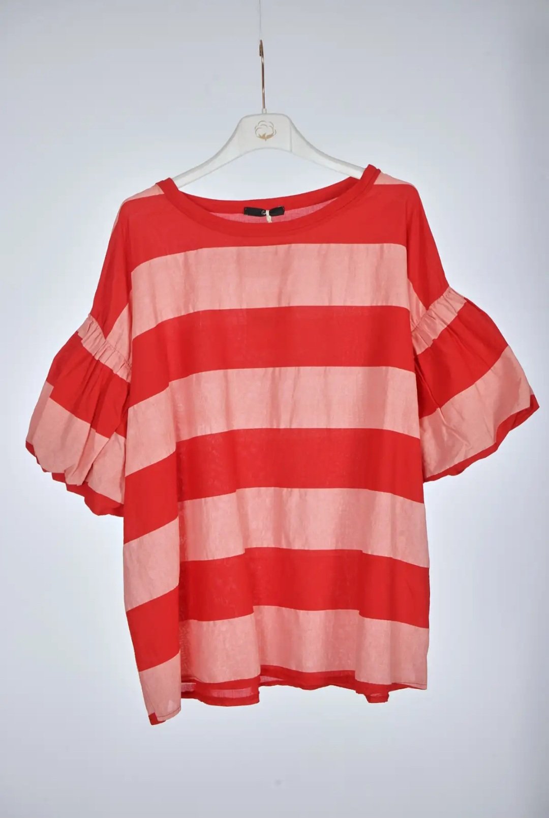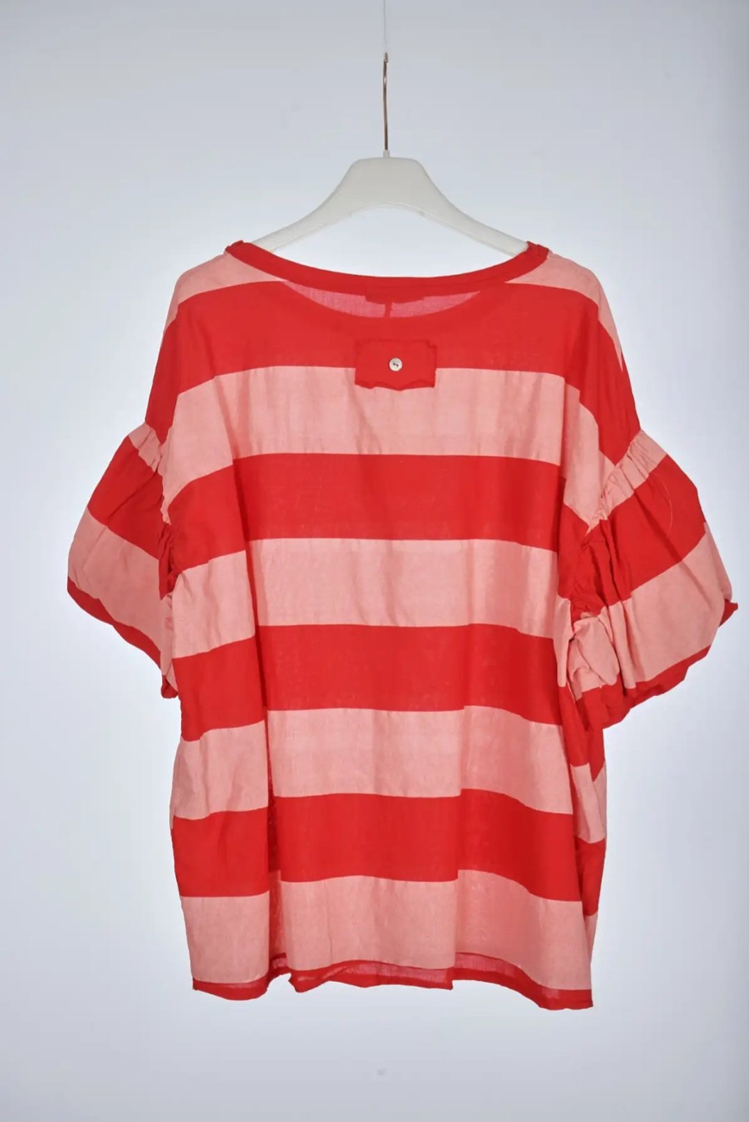 Camiseta de rayas rosas ,con volantes en las mangas.Talla Unica 38-40