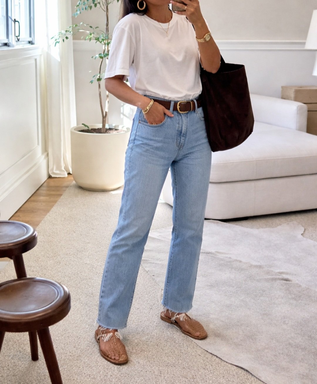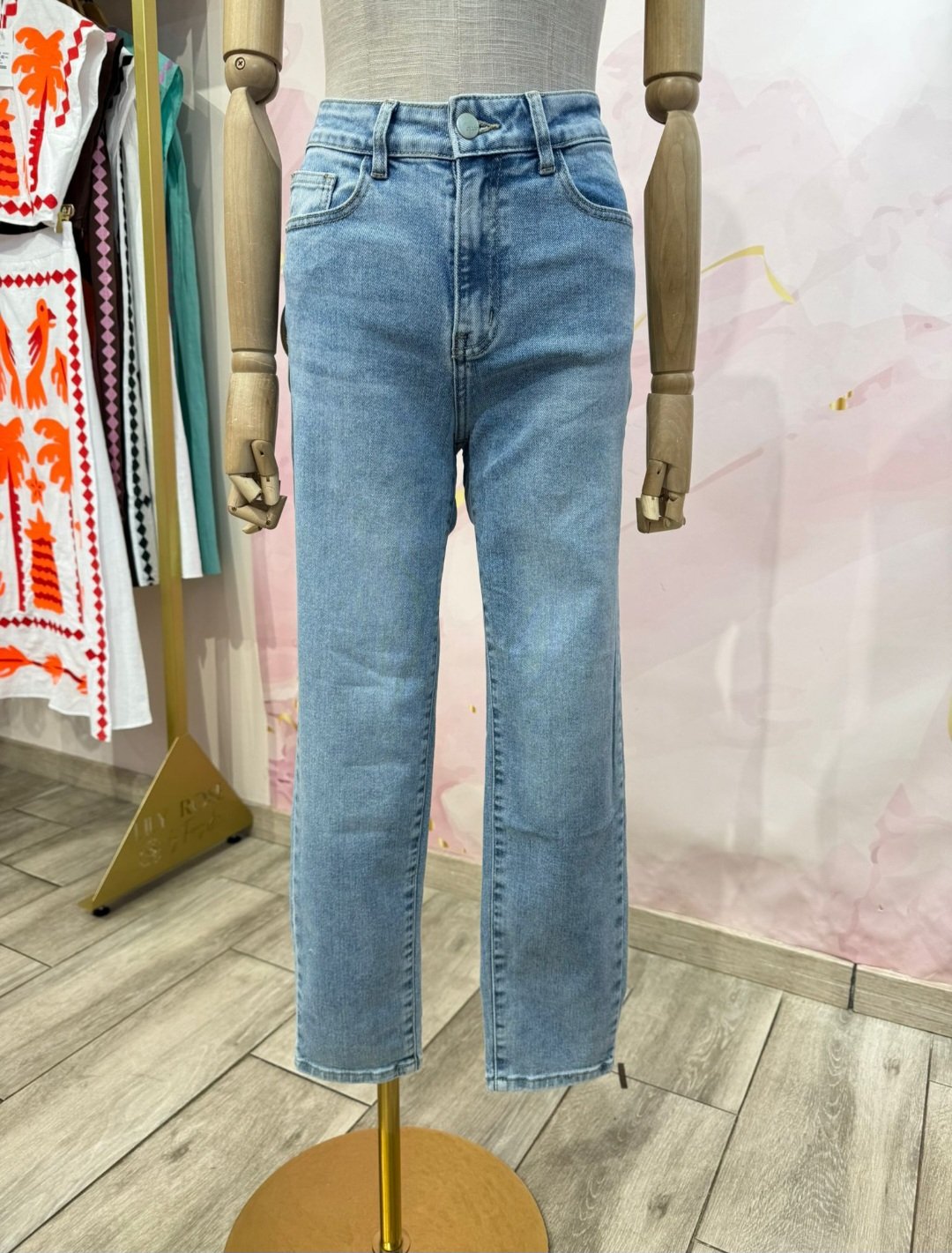Jeans mum fitt.Color vaquero desgastado.Cintura alta y cañon estrecho.